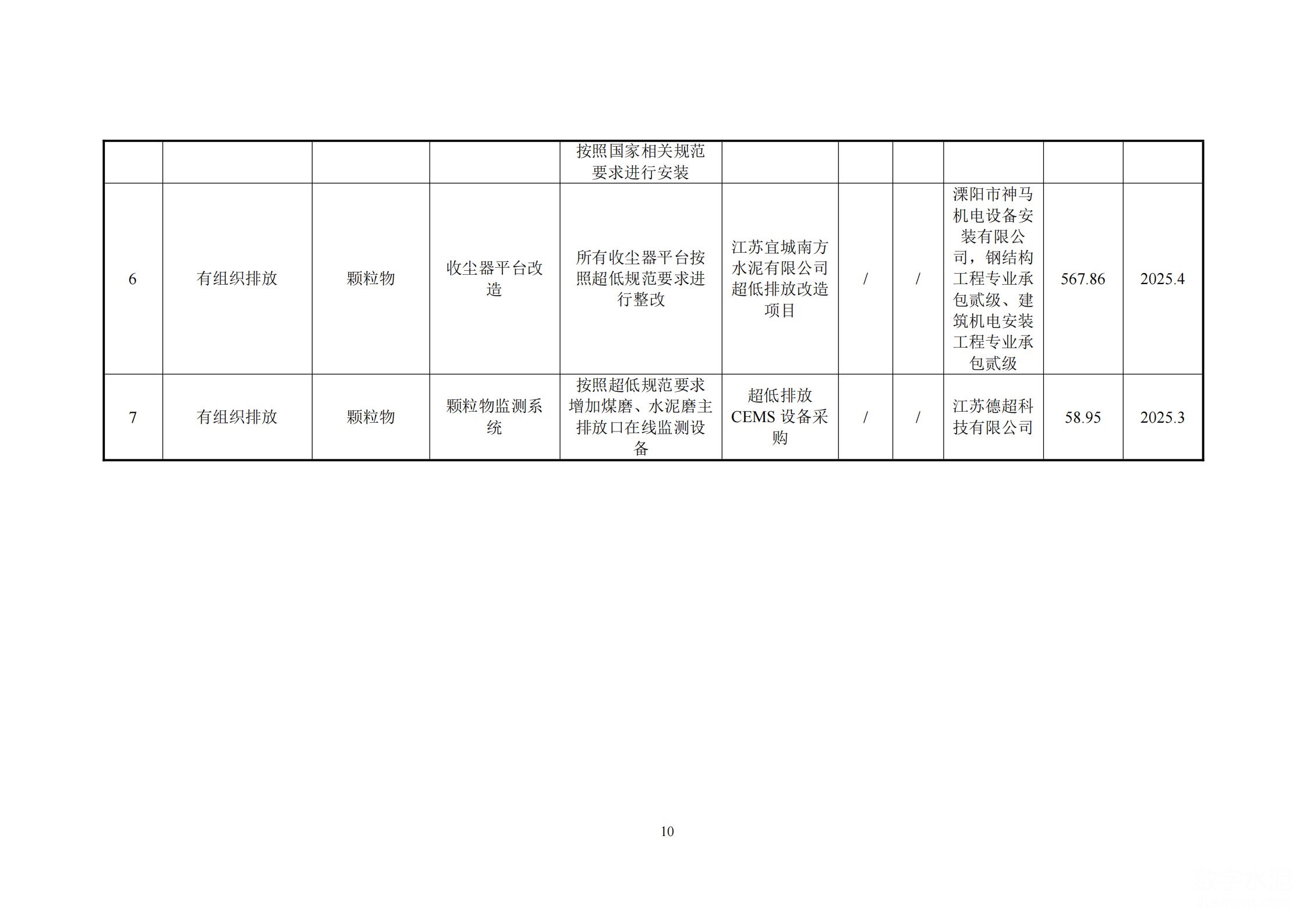 江蘇宜城南方水泥有限公司超低排放改造和評估監測進展情況公示內容
