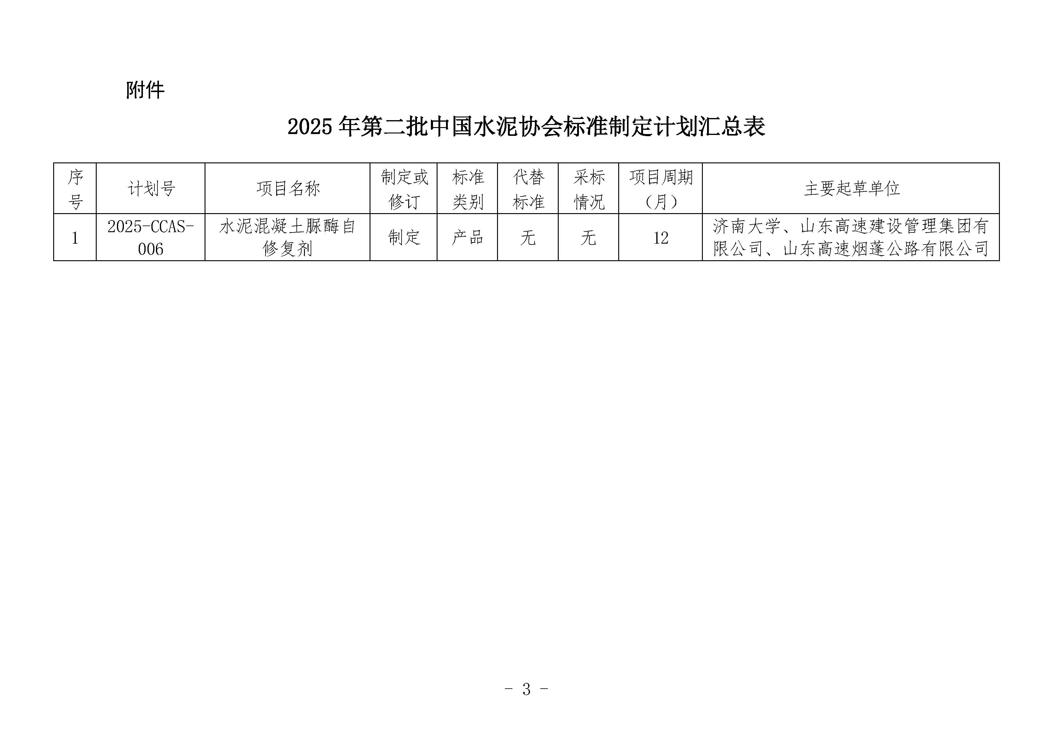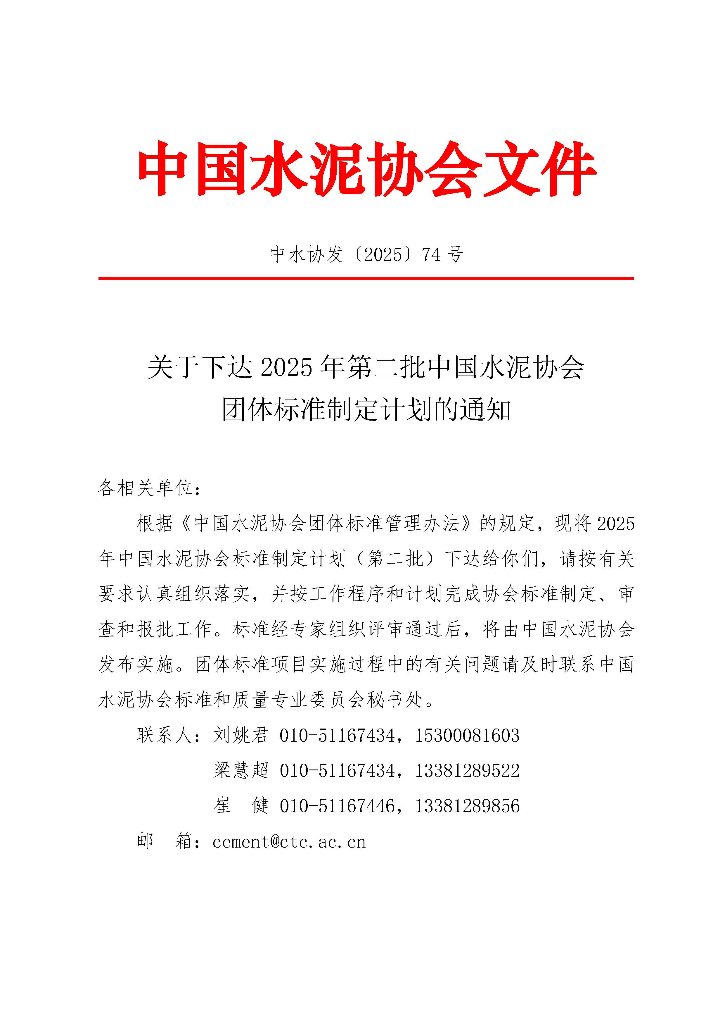 關(guān)于下達2025年第二批中國水泥協(xié)會團體標(biāo)準(zhǔn)制定計劃的通知