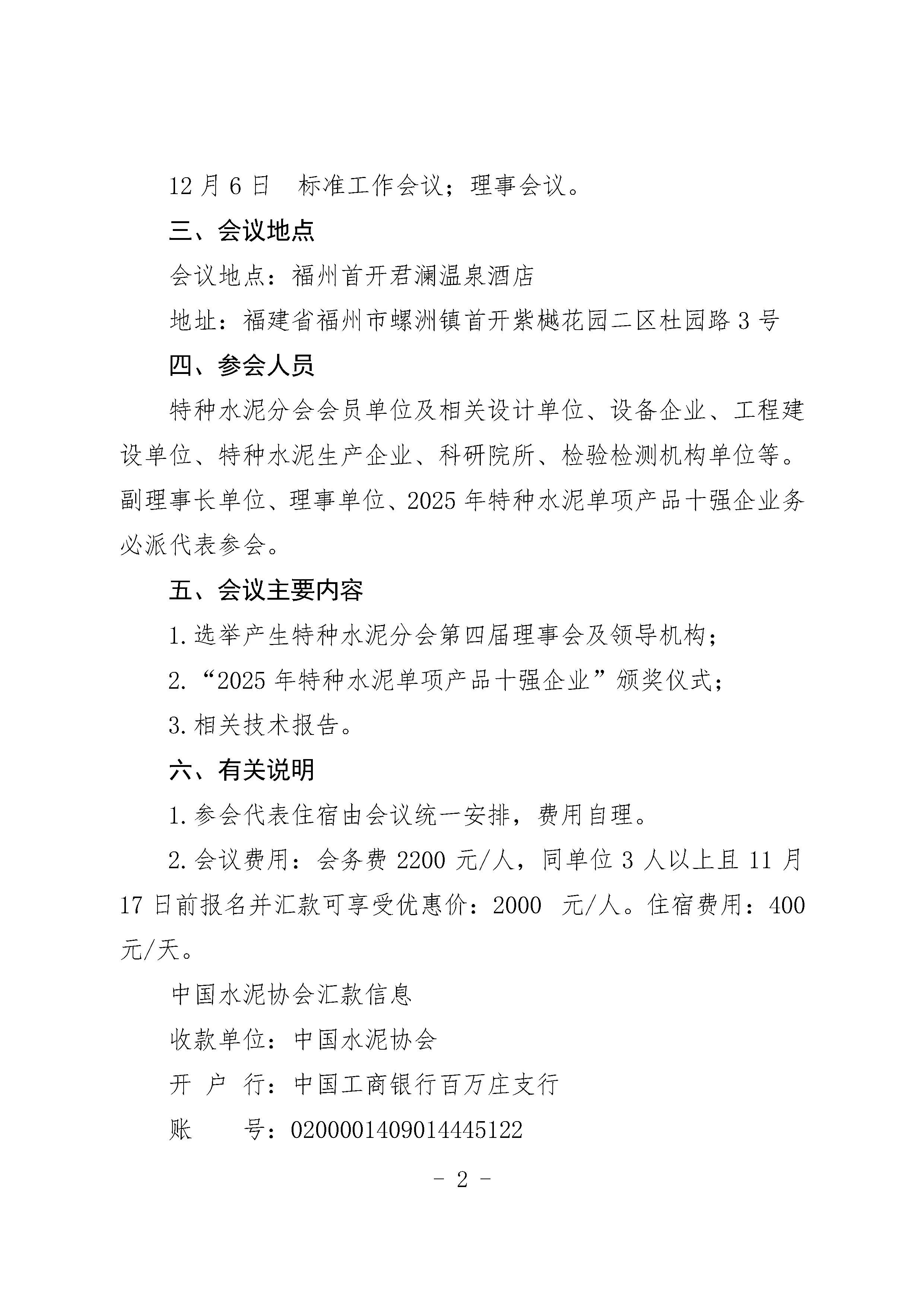 關于召開中國水泥協會特種水泥分會第四屆會員大會暨2025年年會的通知